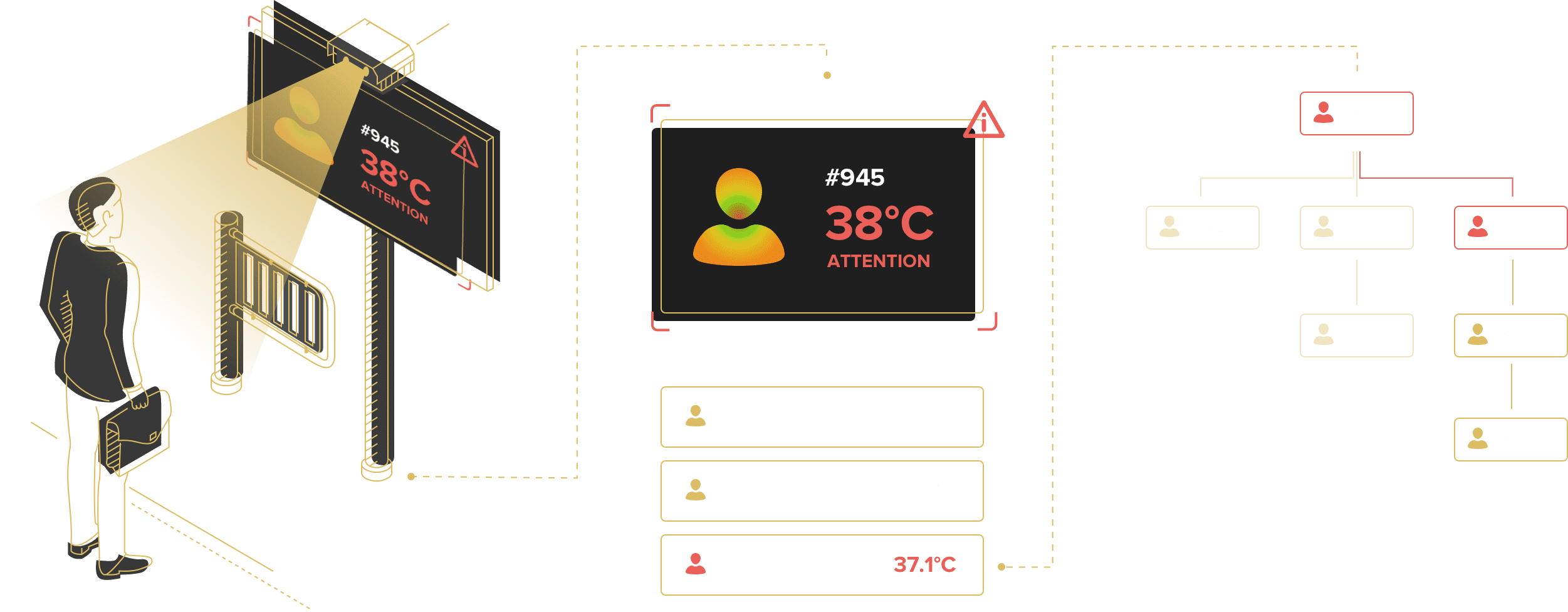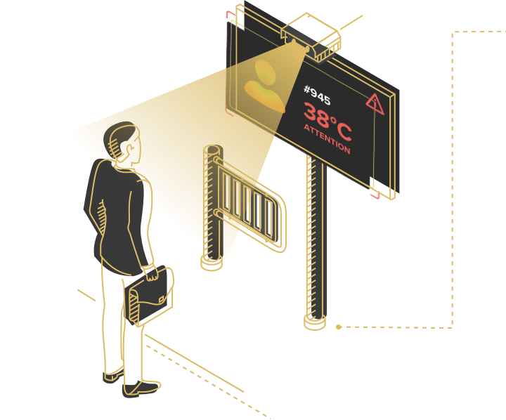 The detection system allows you to measure body temperature from a distance with thermal cameras, detecting individuals with a fever.