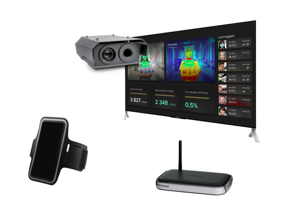 • Non-contact body temperature monitoring and face recognition combined with body temperature monitoring